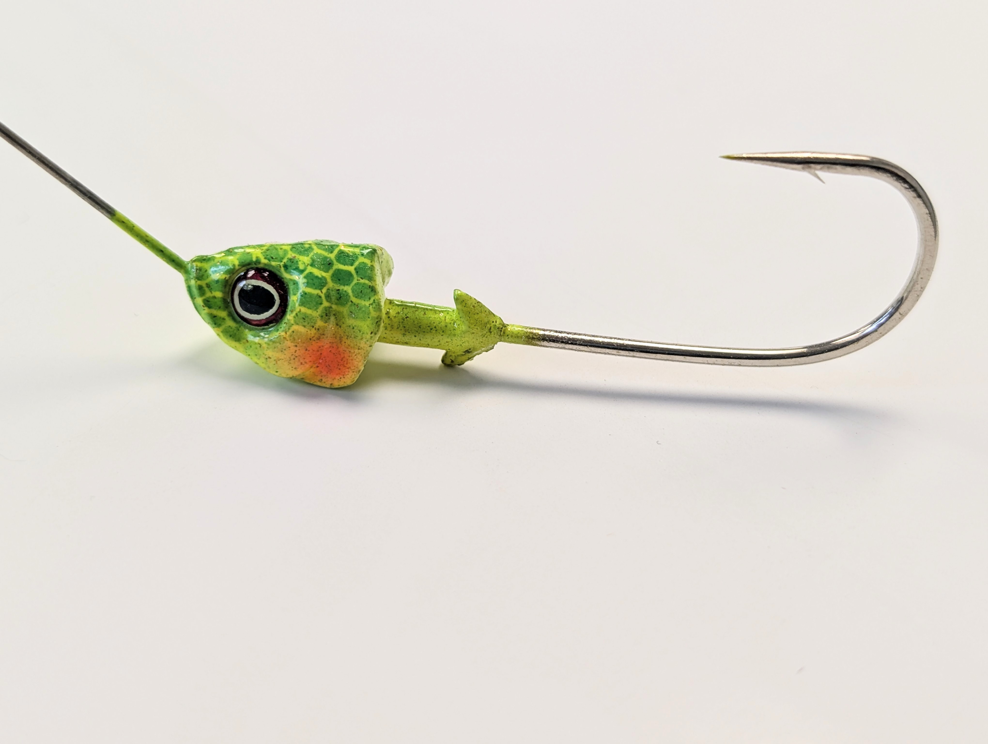 - 3/8oz with a 4/0 Mustad Hook (32608N)